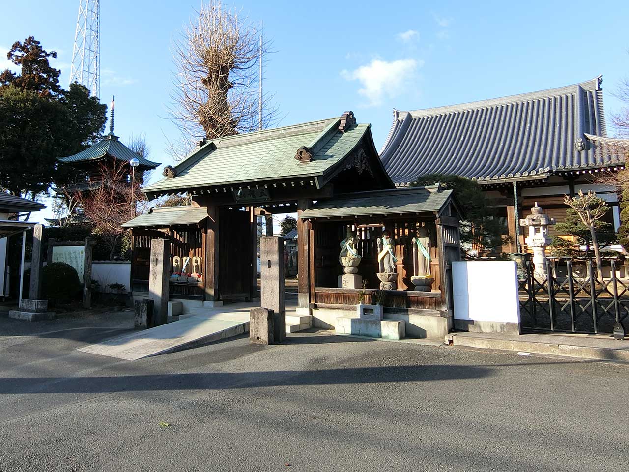 門の右側は如意輪観音と2体の地蔵立像。