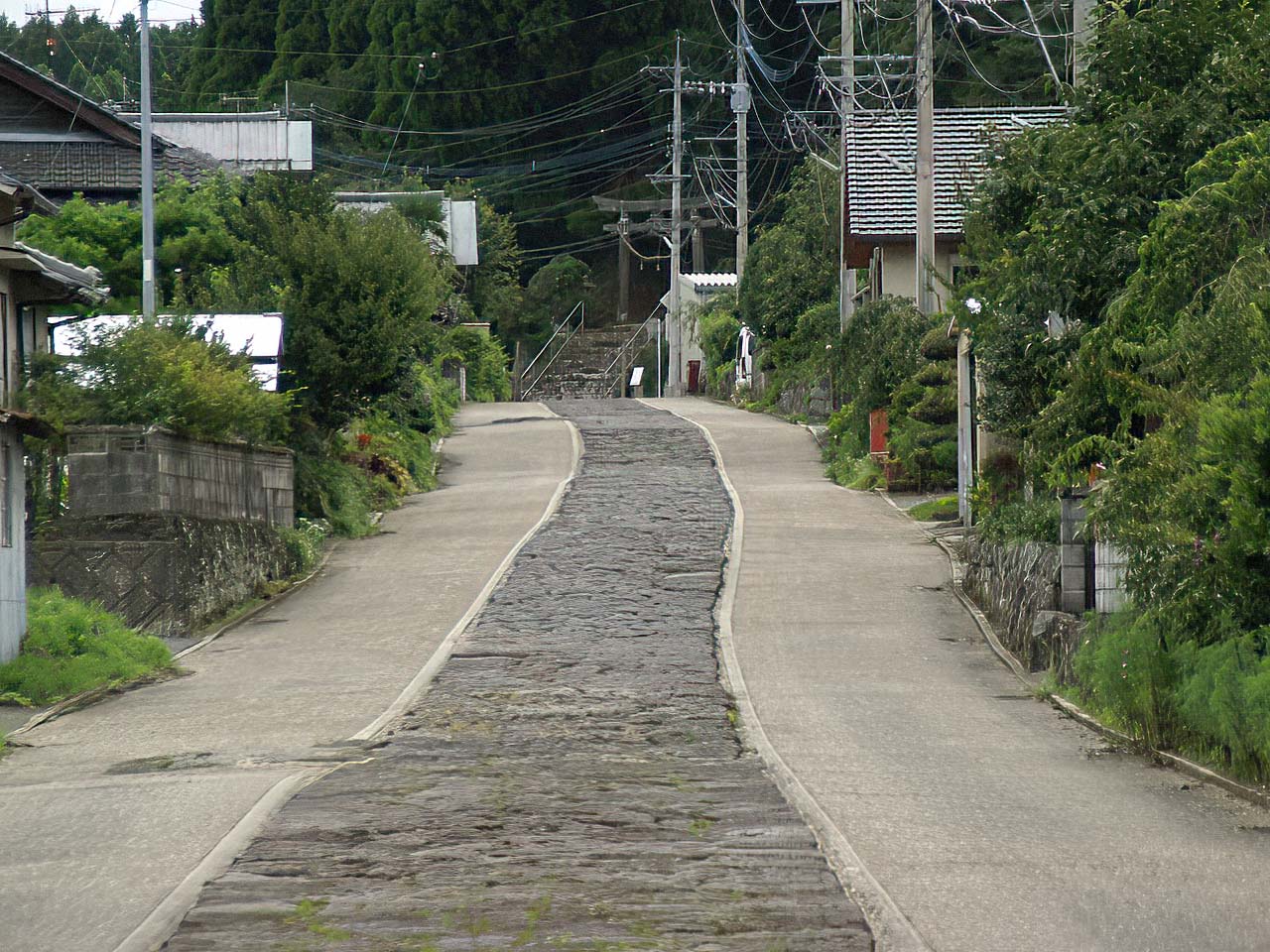 県道をはずれて旧道の枝道に入ると、すぐに道の中央が石畳になっていた。