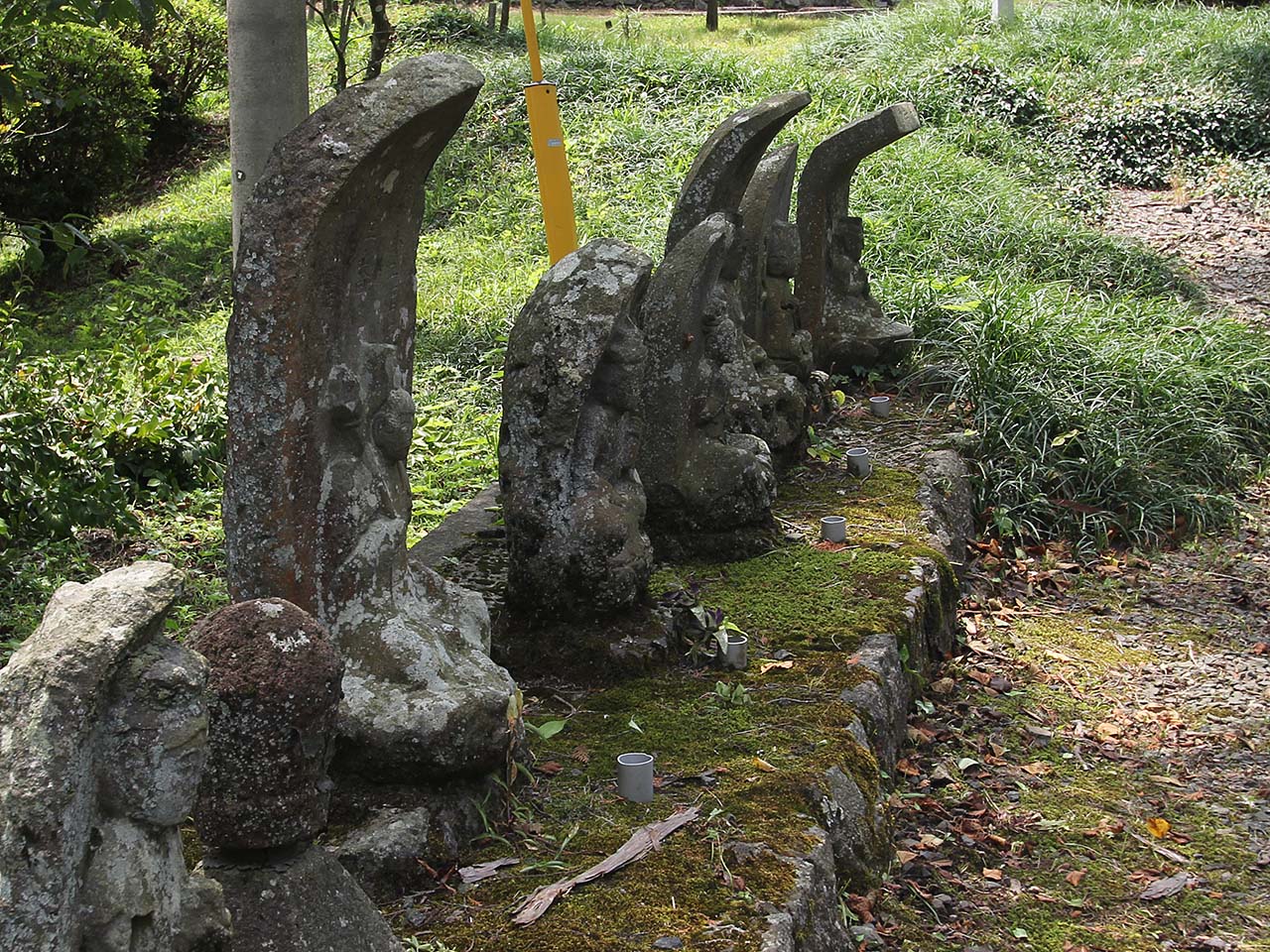 本堂エリア東縁にはミニ観音霊場。18体ほどの石仏が並んでいる。