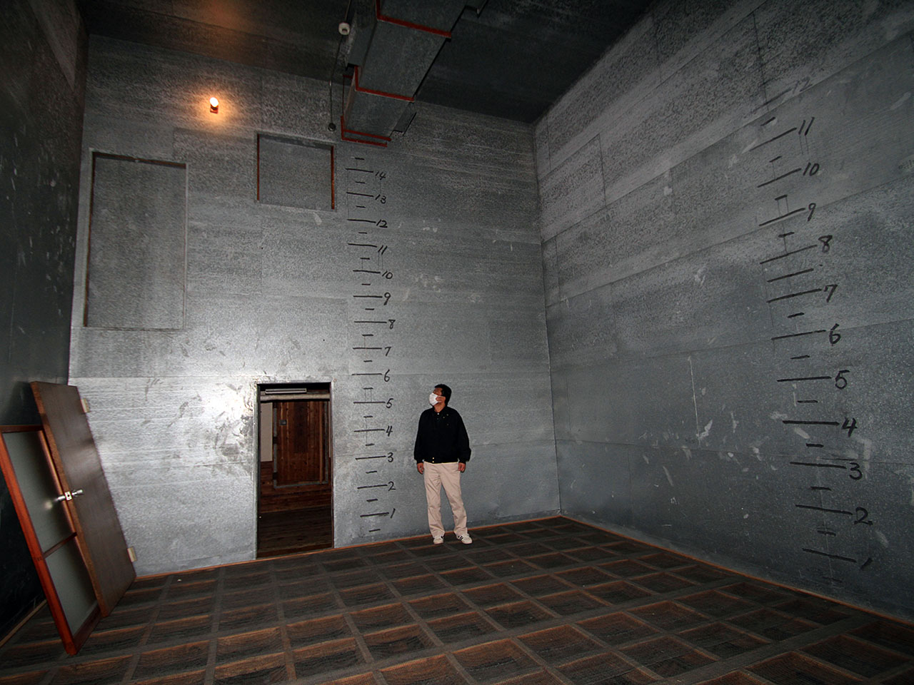 目測だけど間口6m、奥行8m、高さ5mくらいはありそう。この巨大な空間が純白の繭でいっぱいになった時代があったのだ。