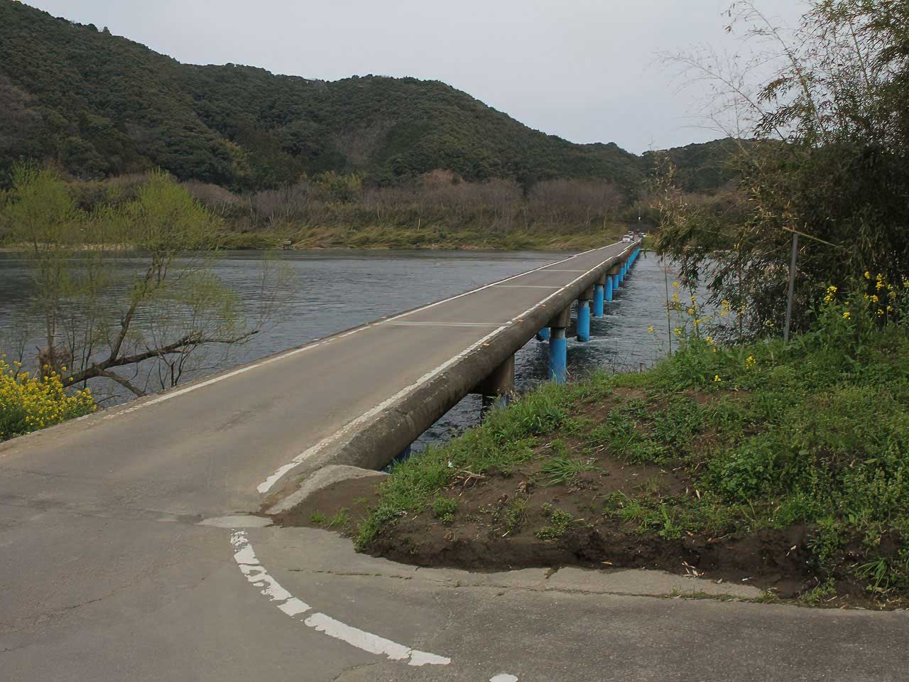 ペンキが塗られているせいで風情がなくなる、ということはまったくない。これはこれで個性があっていいののだ。そもそも沈下橋は木材の流送や舟運が終わったあとの現代に生まれた橋であって、そこまで風情にこだわるものではないのだ。