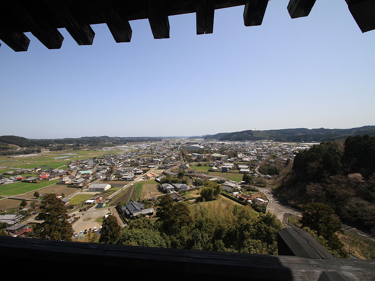 この場所に何らかの建造物があったことは発掘などで判明しているが、どのような形の建物だったかは絵図などが残っていないためはっきりとはしない。なので、戦国時代初期を想定してすべて空想で再建した。このように実際の城跡に史料に基づかずに再建した城を模擬天守という。この模擬天守に関して言えば、あまり前のめりになっているところもなく堅実なところではないか。望楼にバルコニーがあったかどうかはわからないけれど、わざわざ真っ暗でのぞき窓から外を見るような再建をしてもしょうがないからこれでいいのだろう。
