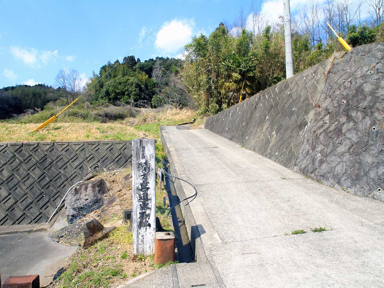 近くに国指定史跡の磨崖仏があるというので見ていこう。入口は何の変哲もない農道。