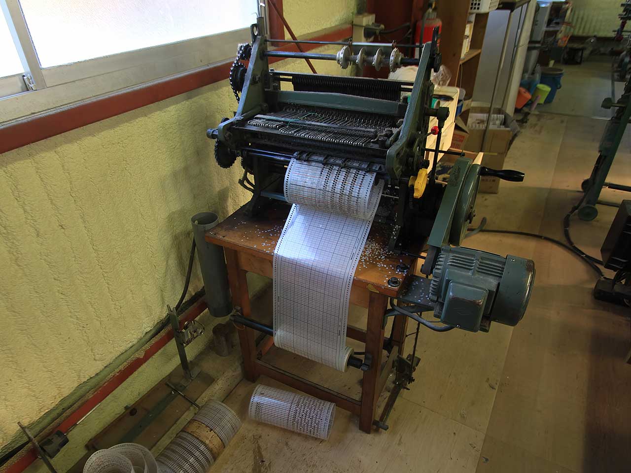 現代ではコンピュータ化されていることころも多いのでこうした紋紙で制御する織機自体がすでにレトロなものと言っていいのではないか。