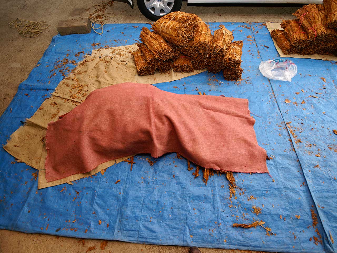 乾燥が早すぎて発酵する前に黄色のまま乾いてしまったときは、一度外に出して夜露にあてて湿らせて、発酵させるということもあるという。