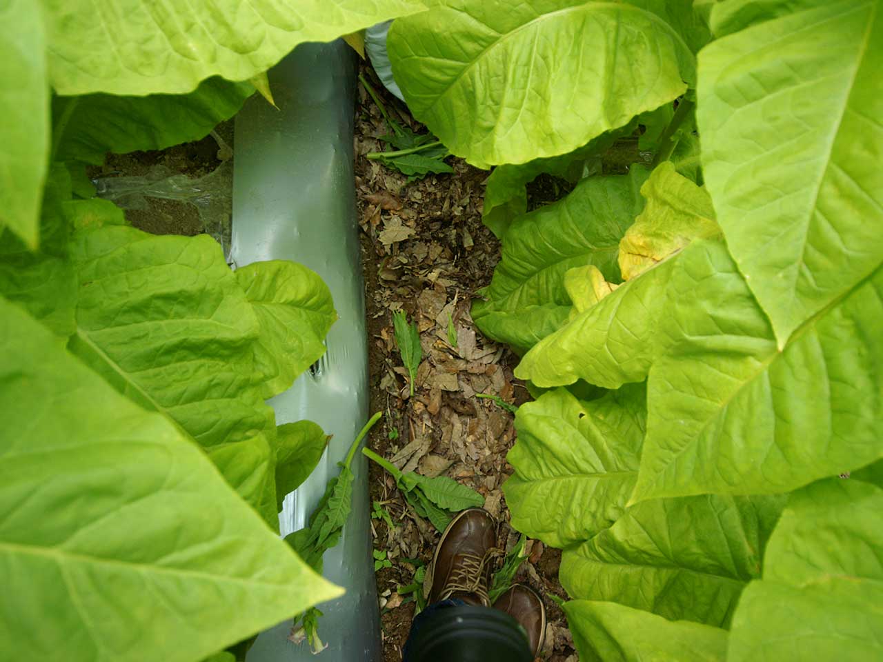タバコ畑の面積は聞き漏らしたが25アール弱くらいはありそう。苗を1万本植えているというので、大きく間違ってはいないだろう。