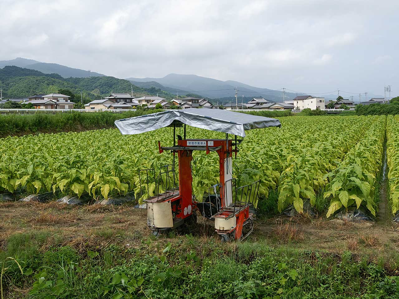 他の作目でも畝間に入っていける中耕用の管理機はあるけど、すべて歩行型。AP-1は乗用で座って作業できるの点が特長だ。タバコ以外の作目にも使えそうな気が・・・。