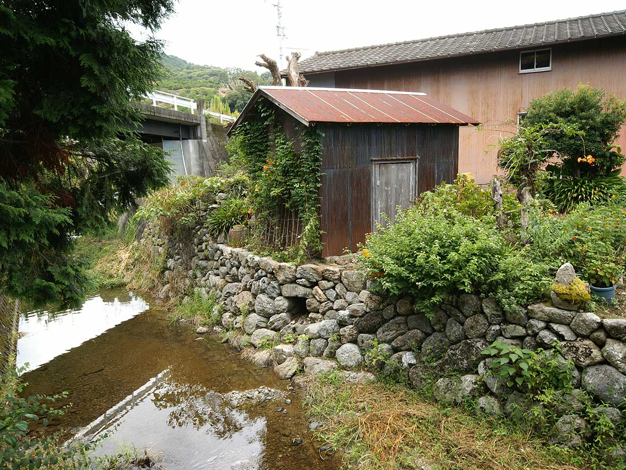 推定だが、写真中央の波トタン葺きの小屋のあたりにあったのではないかと思われる。あるいはこの小屋が水車小屋そのものの可能性もある。