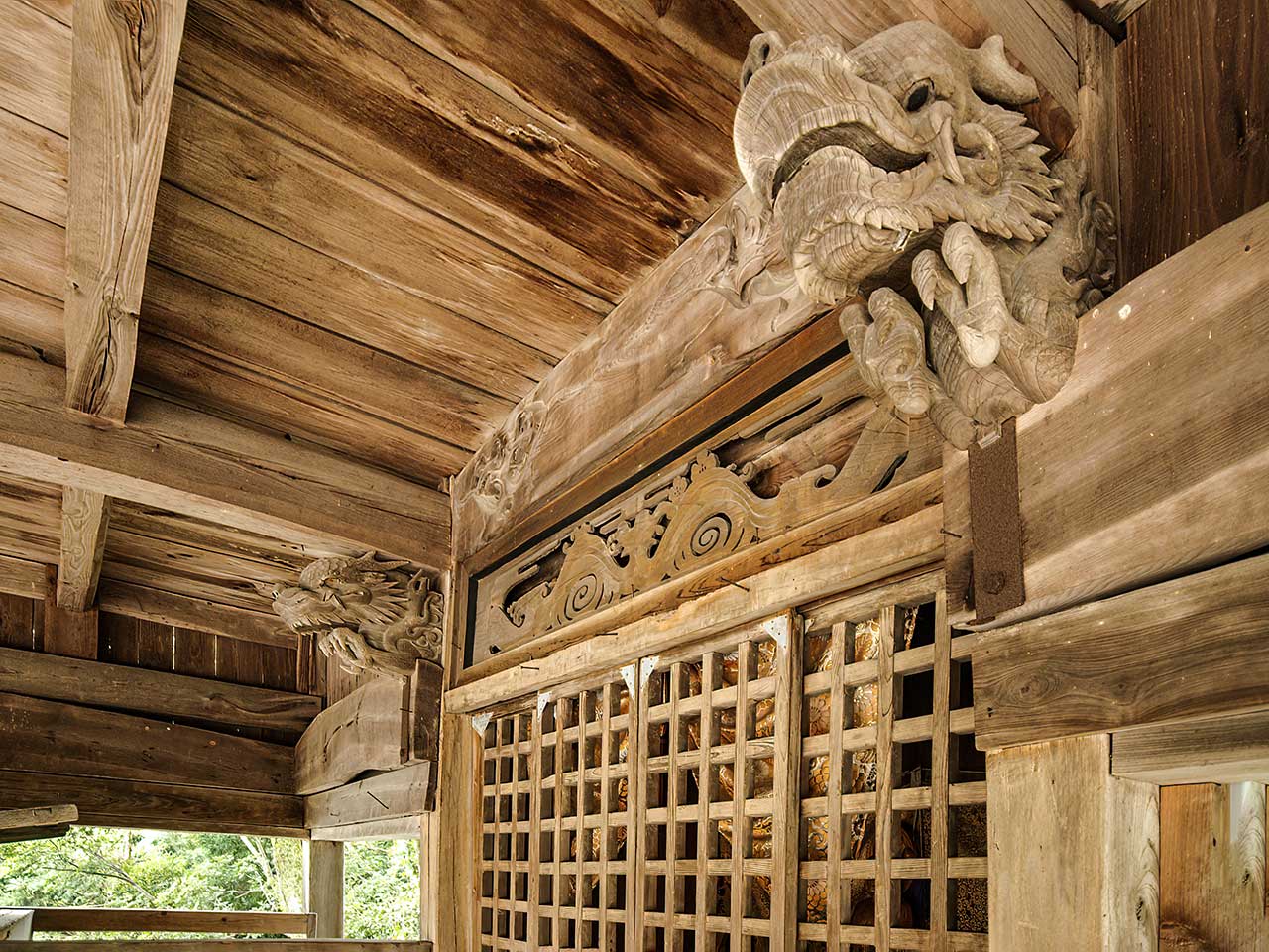 全体的には飾り気のないお堂だが、祭壇部分にだけ彫物がある。