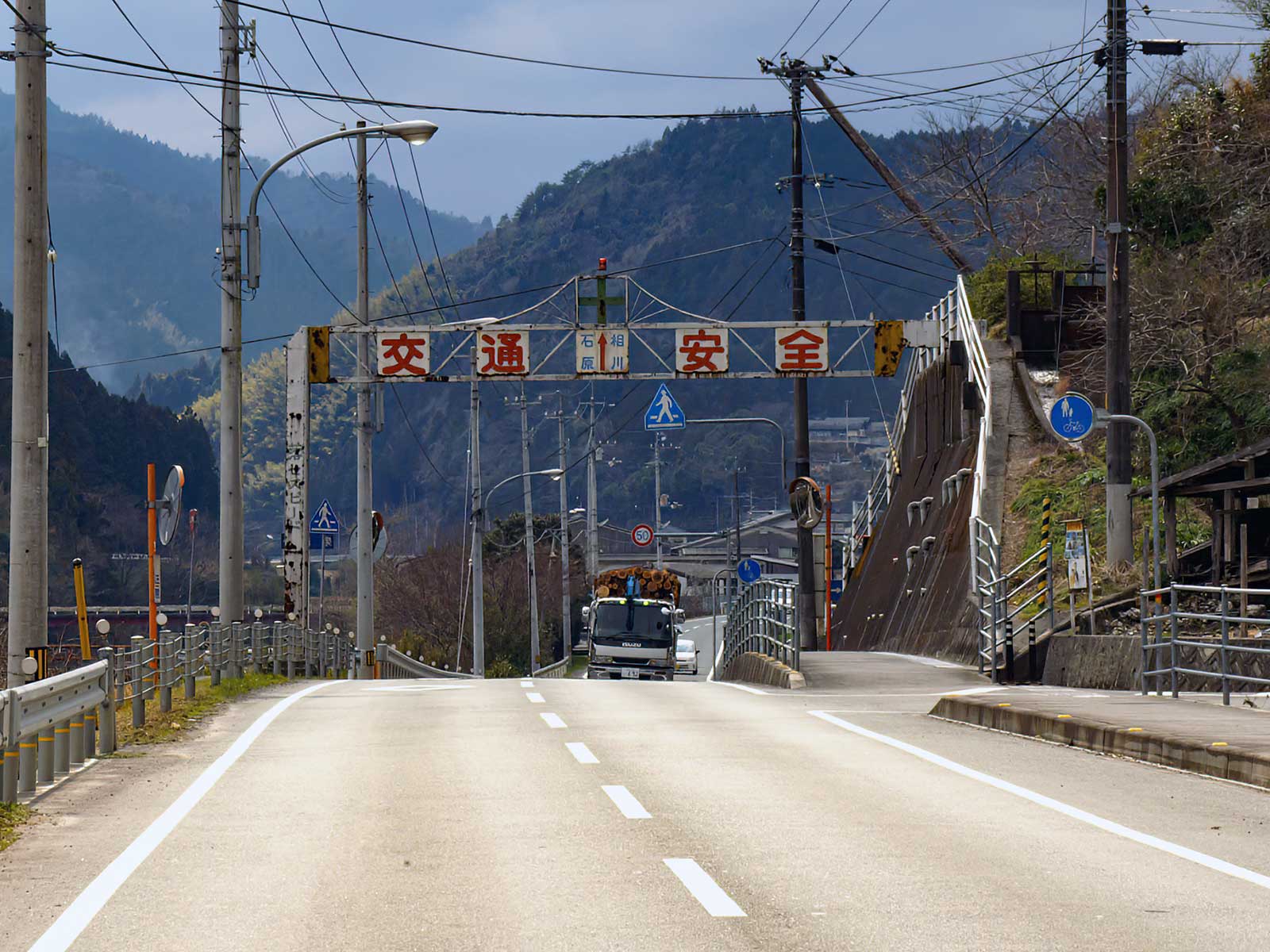 国道から旧市街へ入る角にアーチ看板があった。「本山町商店街」とあるけれど、いまも営業している商店はわずかで「街」といえる場所ではない。