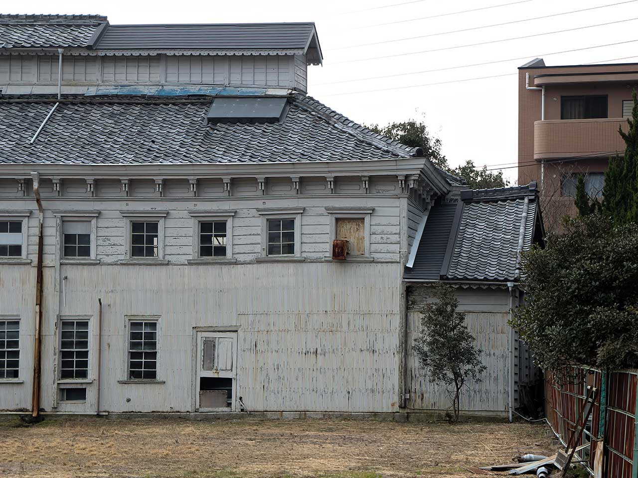 三重県でもう1ヶ所寄り道したのがここ、亀山製糸室山工場の跡地だ。古い製糸工場の建物がいまも残る。