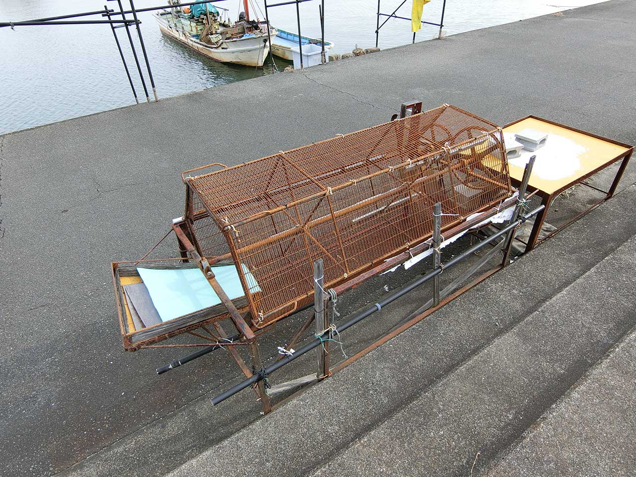 細かい砂などを流すフルイか、貝の大きさを揃える分級機的なものかな。