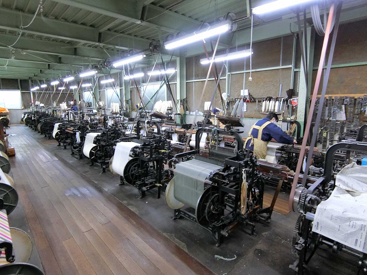 次に見せてもらったのが機場。間口から想像していたよりも規模が大きい工場だった。敷地が奥のほうが広くなっていたのだ。