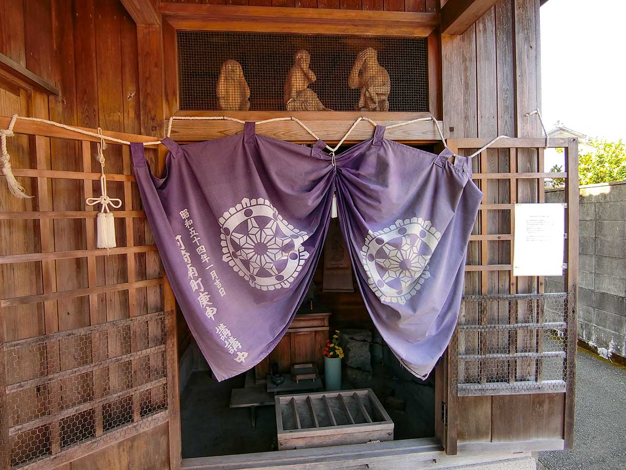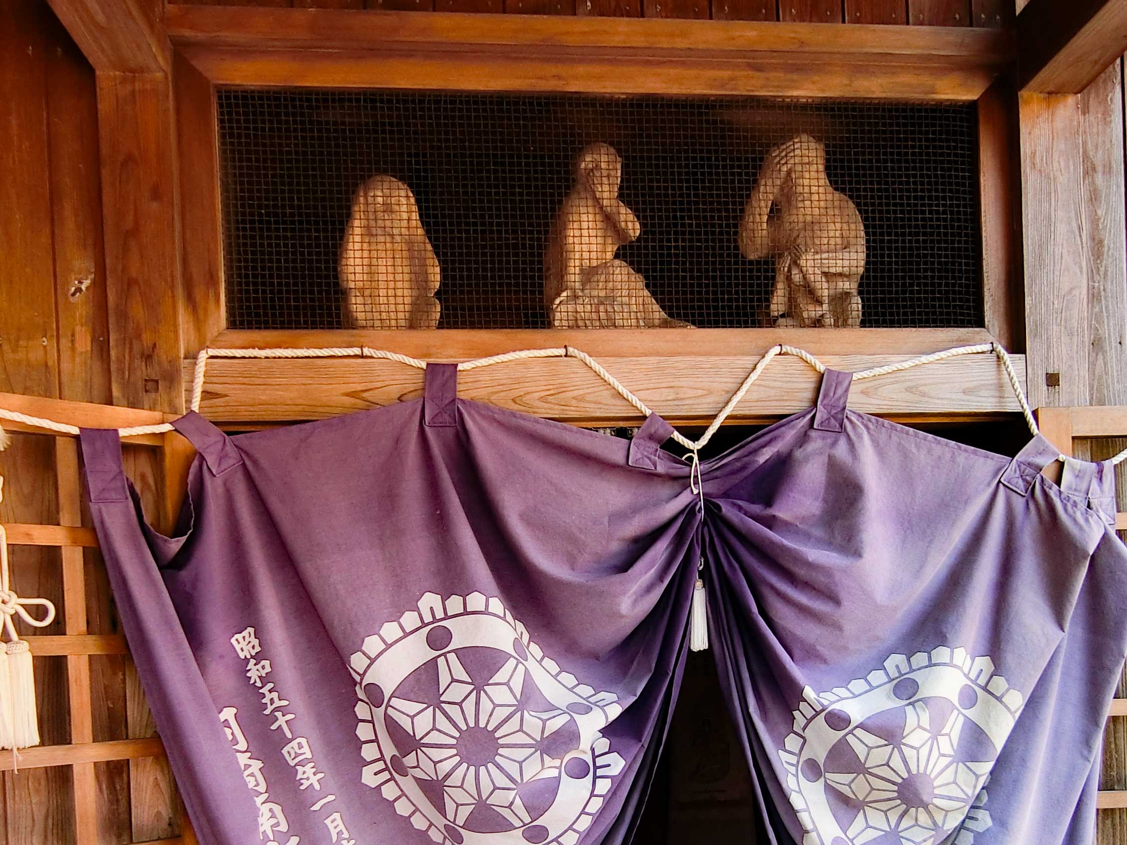 ちょっと覗いてみる、内部が神前幕でほぼ隠されている。もしかして猿が卑猥なところを見せてたりするのか?