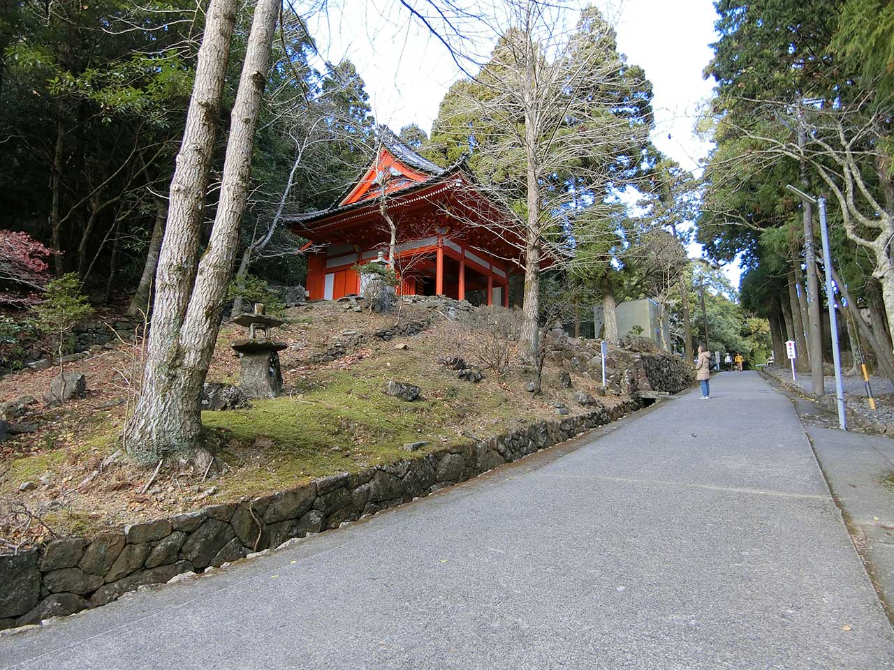 山頂にも伽藍があり、標高差は100mもないので行ってみたいところなのだが、きょうは余りにも寒いのでやめておいた。