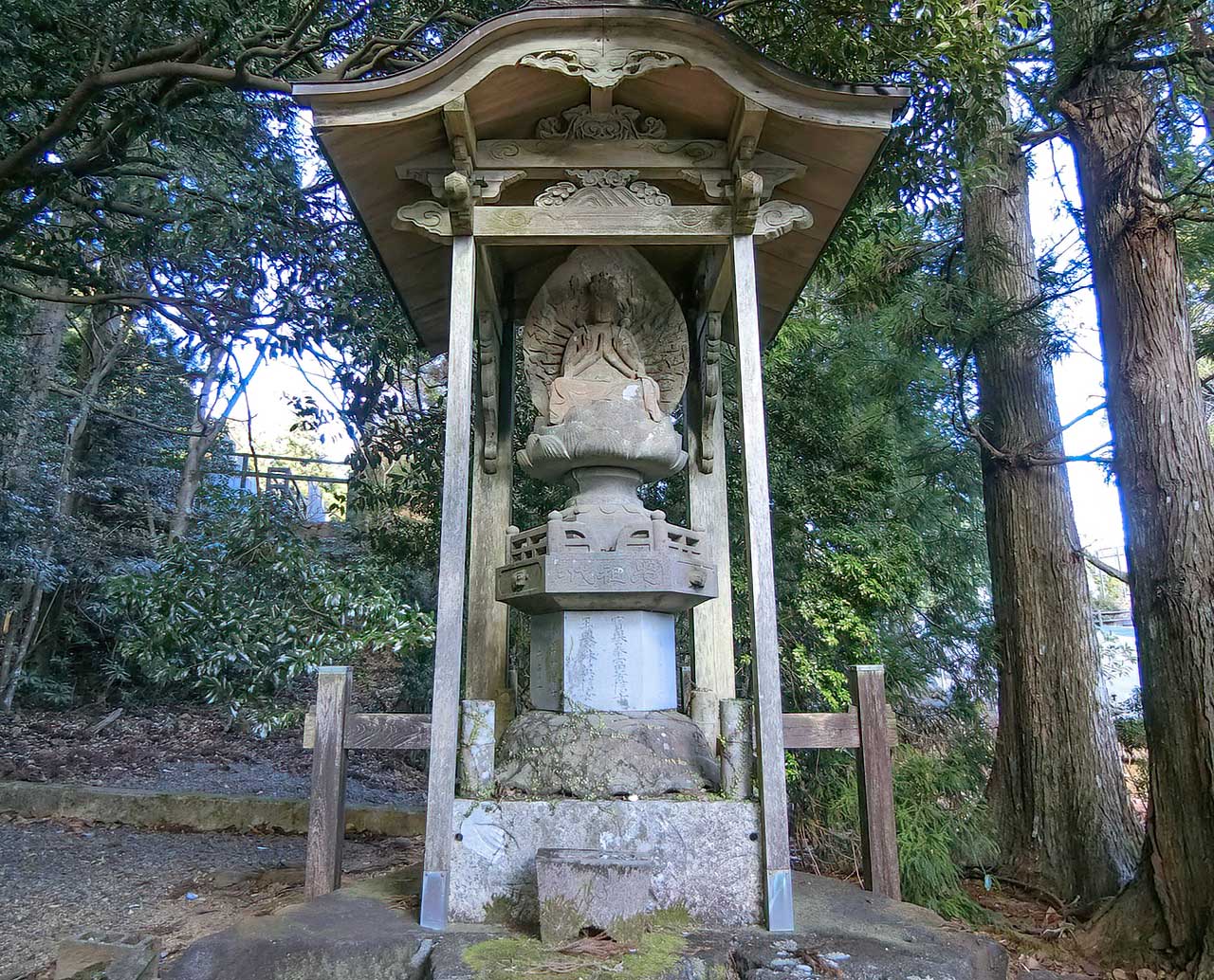山頂登山口付近にあった千手観音。