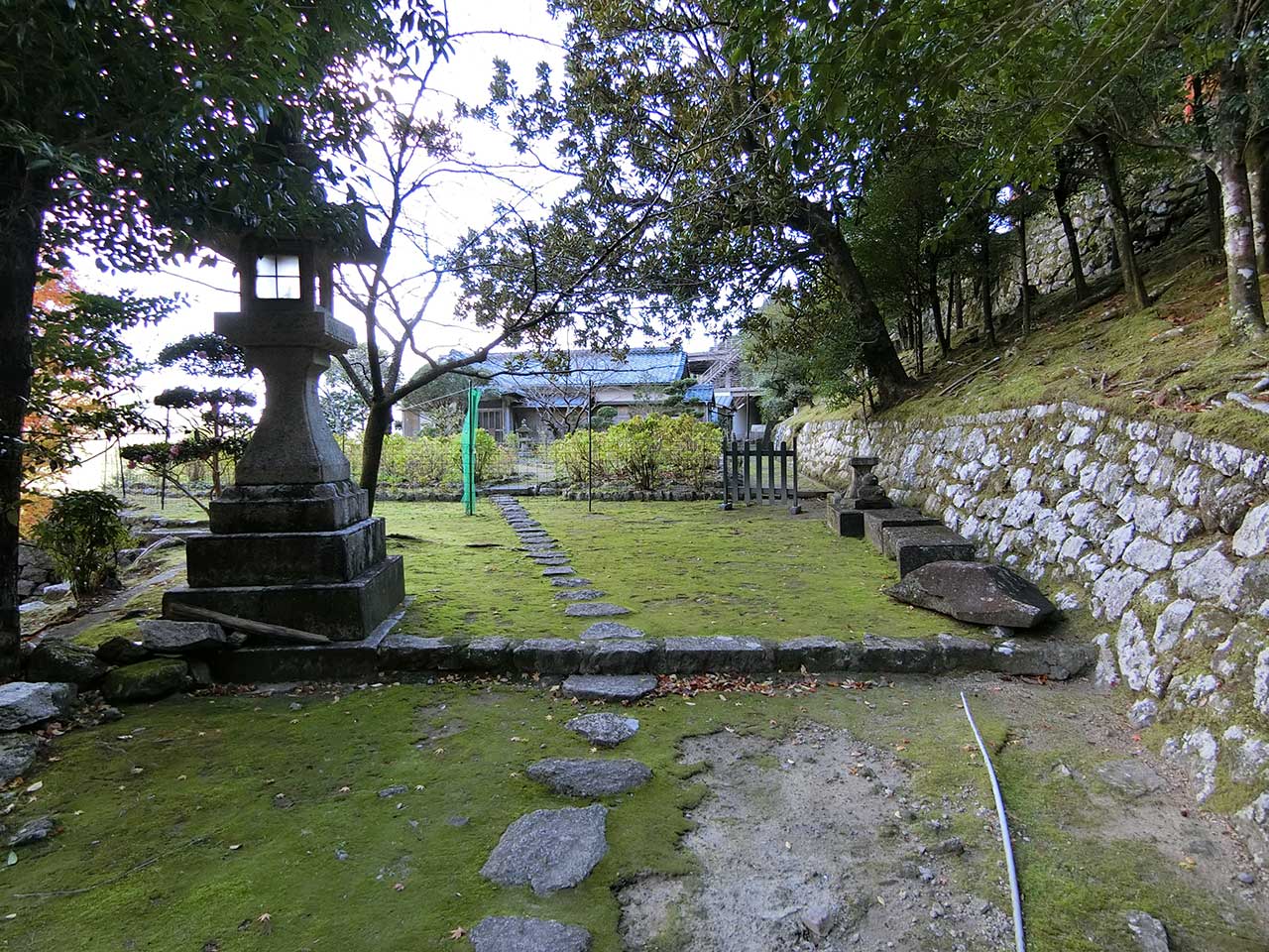 実はこの板垣は目隠しで、この裏側は駐車場になっている。前ページの地図のP2がここにある。息を切らして石段を登ってきた人には「えっここまで車で来れたの~!?」ってなってしまうので駐車場を見えないようにしてあるのだろう。