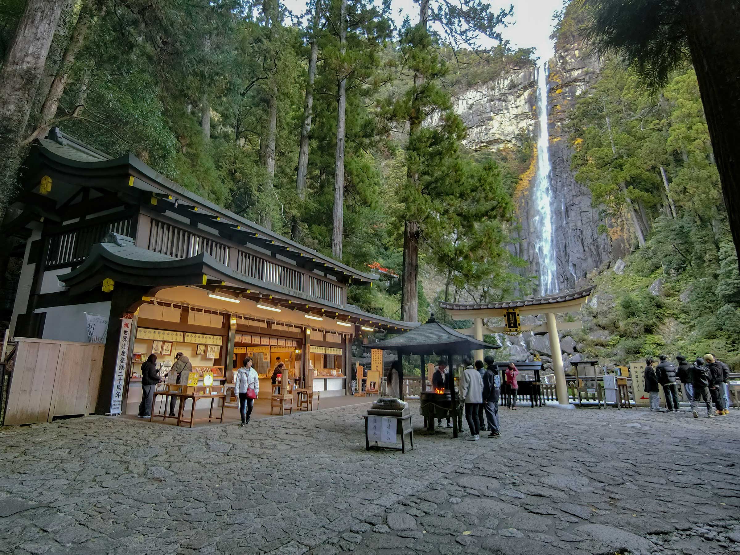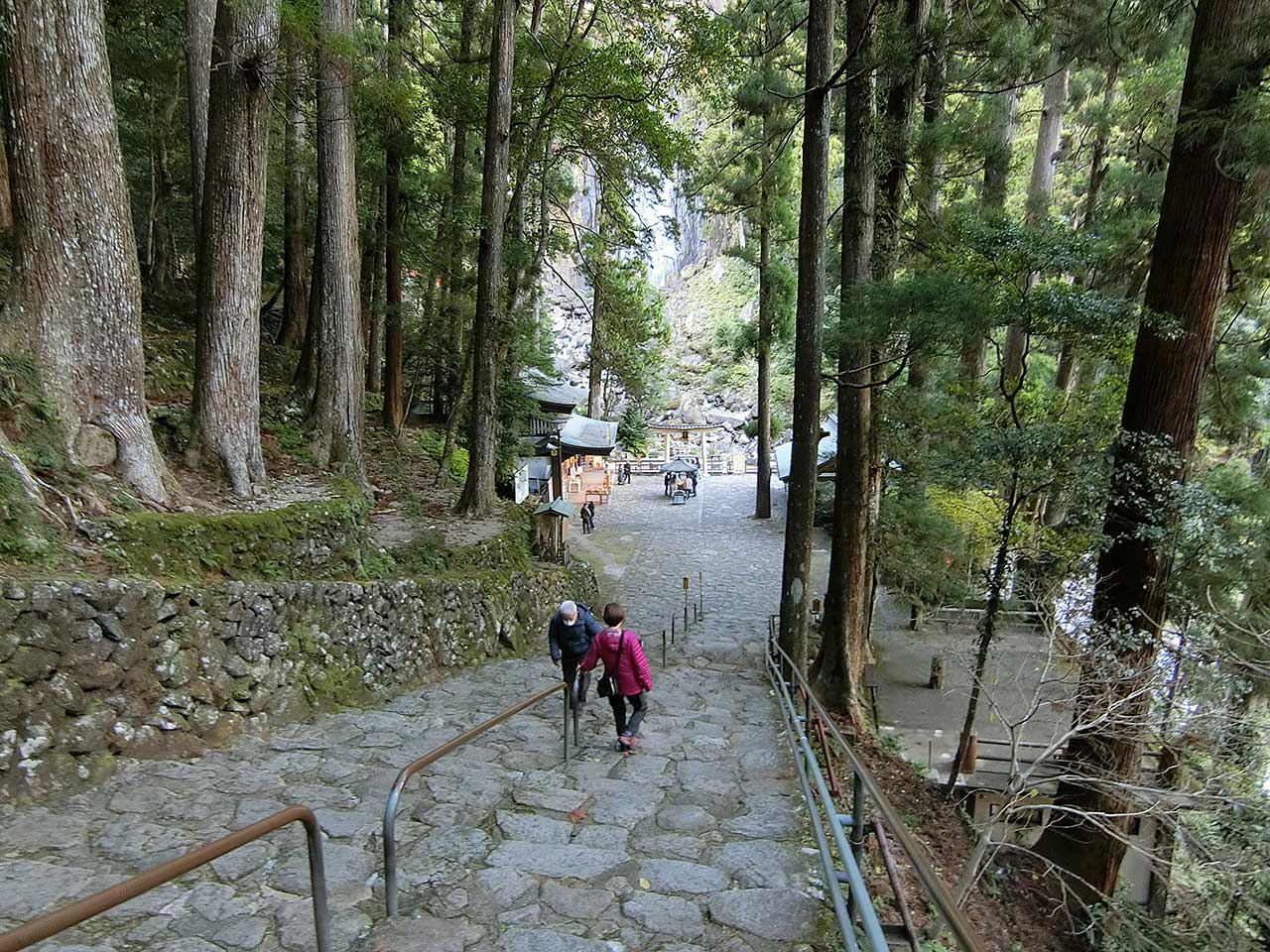 鳥居から先は入れないが、写真左端のところに有料の遥拝所があり、そこへ登ればかなり滝壺に近い場所から滝を眺めることもできる。