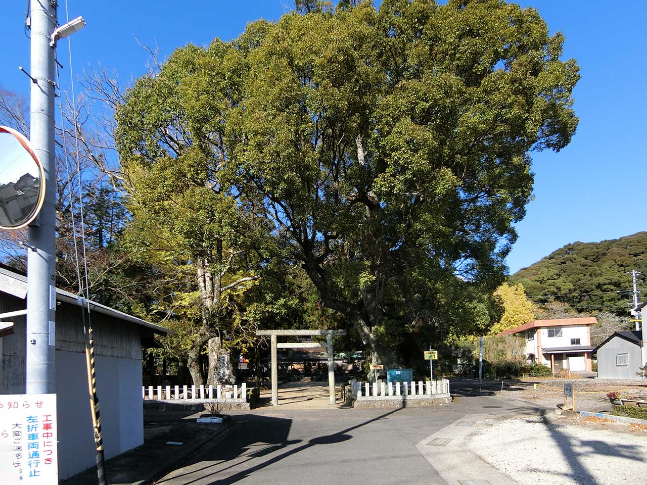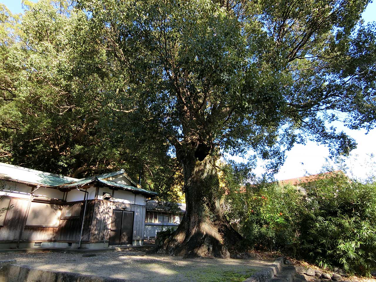 境内は樹齢数百年はあろうかというクスノキが何本もあり森を作っている。この一帯の森は渚の森と呼ばれ書物にも登場するという。